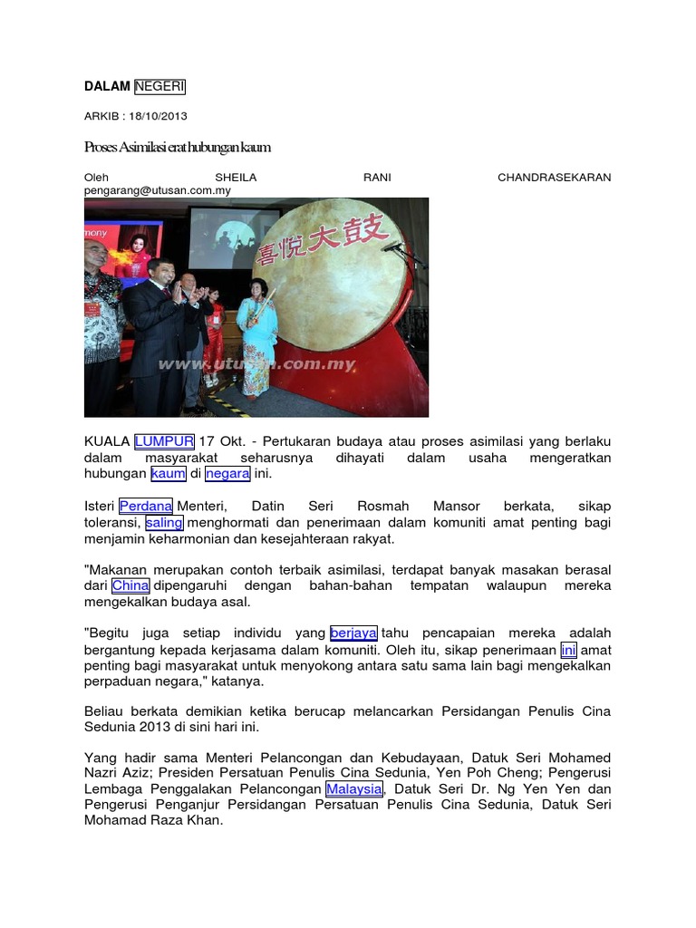 Makanan merupakan contoh terbaik asimilasi. Selang sebaris Font Times New Roman Saiz. Muka hadapan seperti contoh di LAMPIRAN 2.